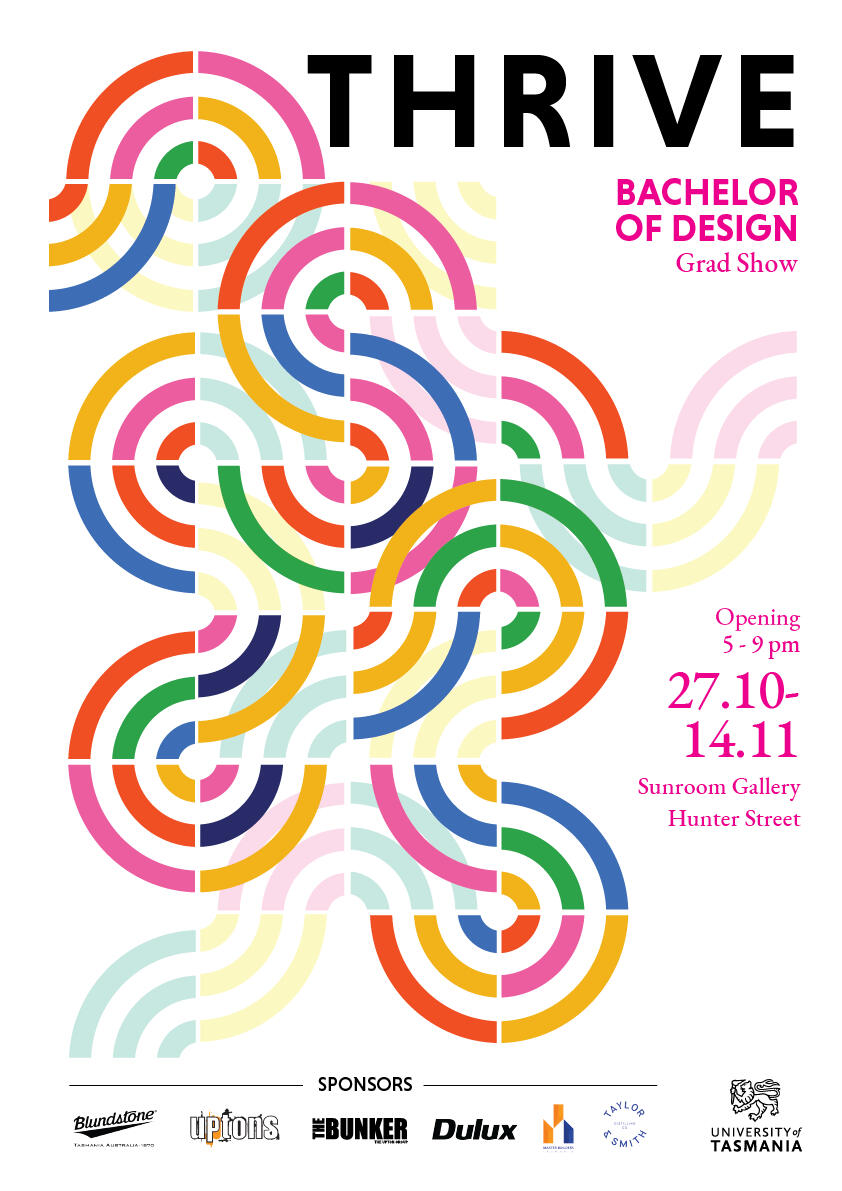 You are invited to discover the next generation of Design innovators at Thrive, our Bachelor of Design graduation exhibition 2023. Showcasing innovation and imagination through a range of projects and collaborations, with Active Work Lab and Brighton Council, through which we celebrate the hard work and vibrant thinking of our graduates across a range of disciplines. Come and be part of our design community that values design as a powerful tool for shaping our world.